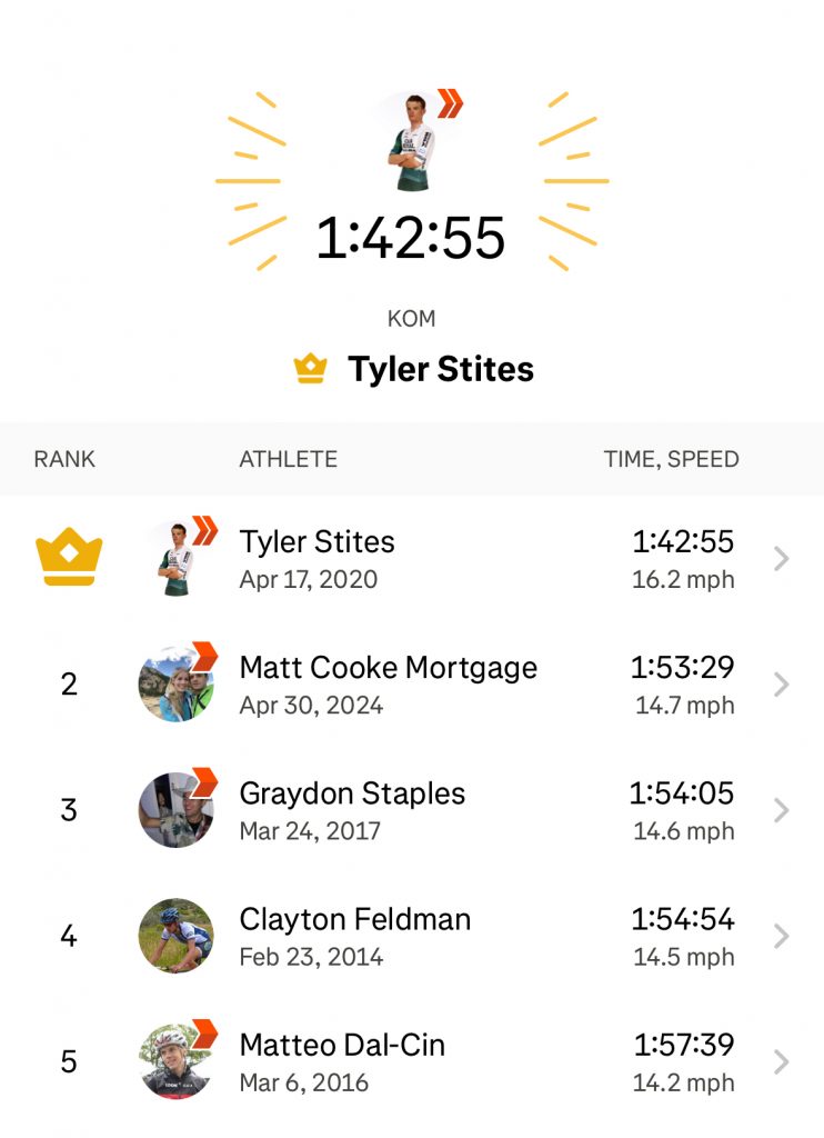With the large number of professional cyclists and triathletes training on the mountain, getting on the Strava leaderboard (top 10) is no easy feat.